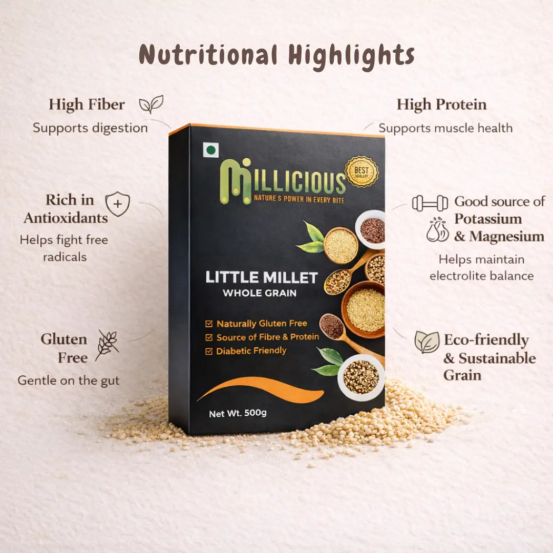 Little Millet Flakes are light, easy to digest, and full of fiber, magnesium, and complex carbs. Whether you prefer a warm bowl with milk, a savory upma, or a crunchy topping for salads, they’re a clean, wholesome option for a healthy Indian breakfast.